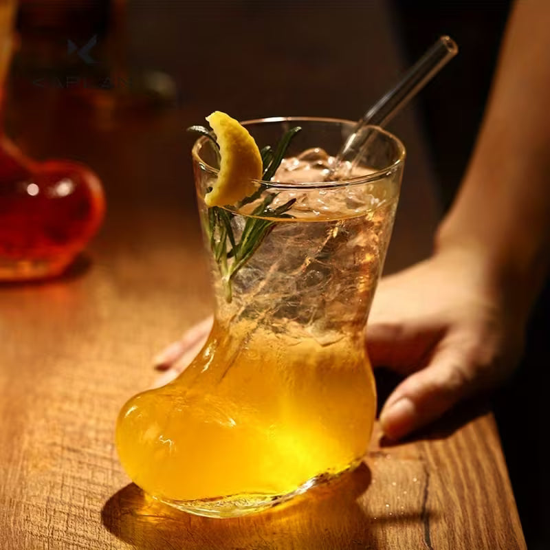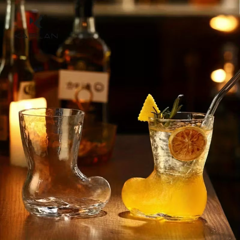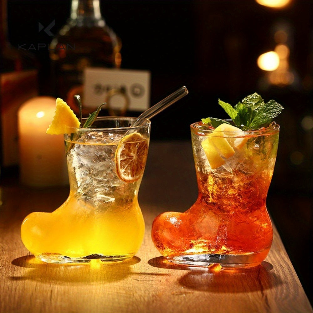 طقم من كوبين زجاجيين بتصميم قارب مستوحى من أجواء عيد الميلاد. بتصميمه المرح، يُعد مثالياً لتقديم المشروبات الباردة والبيرة والعصير.