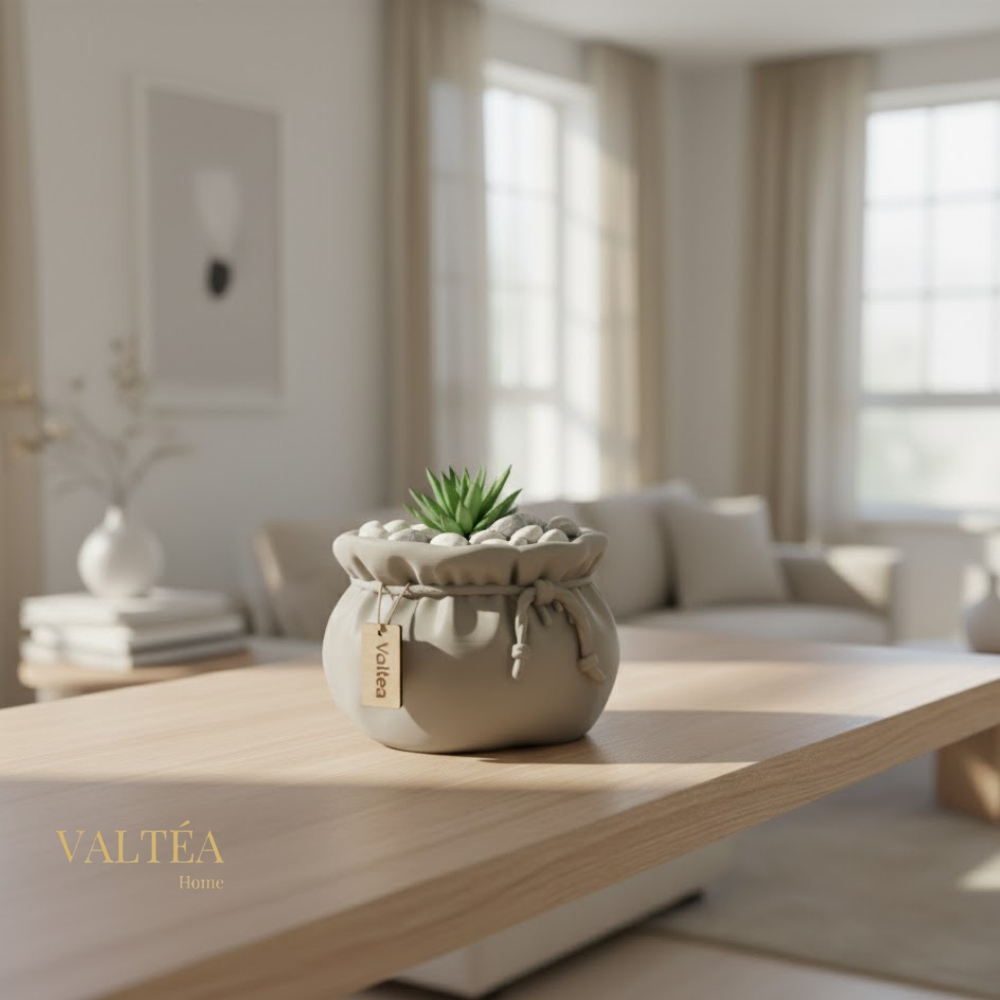 Bu ürün 3D yazıcı ile plastikten üretilmiştir. El yapımı görünümüyle dikkat çeker ve torba biçimindeki tasarımıyla dekoratif bir dokunuş sağlar. Bitkiler, kalemlik veya dekoratif obje olarak kullanılabilir.