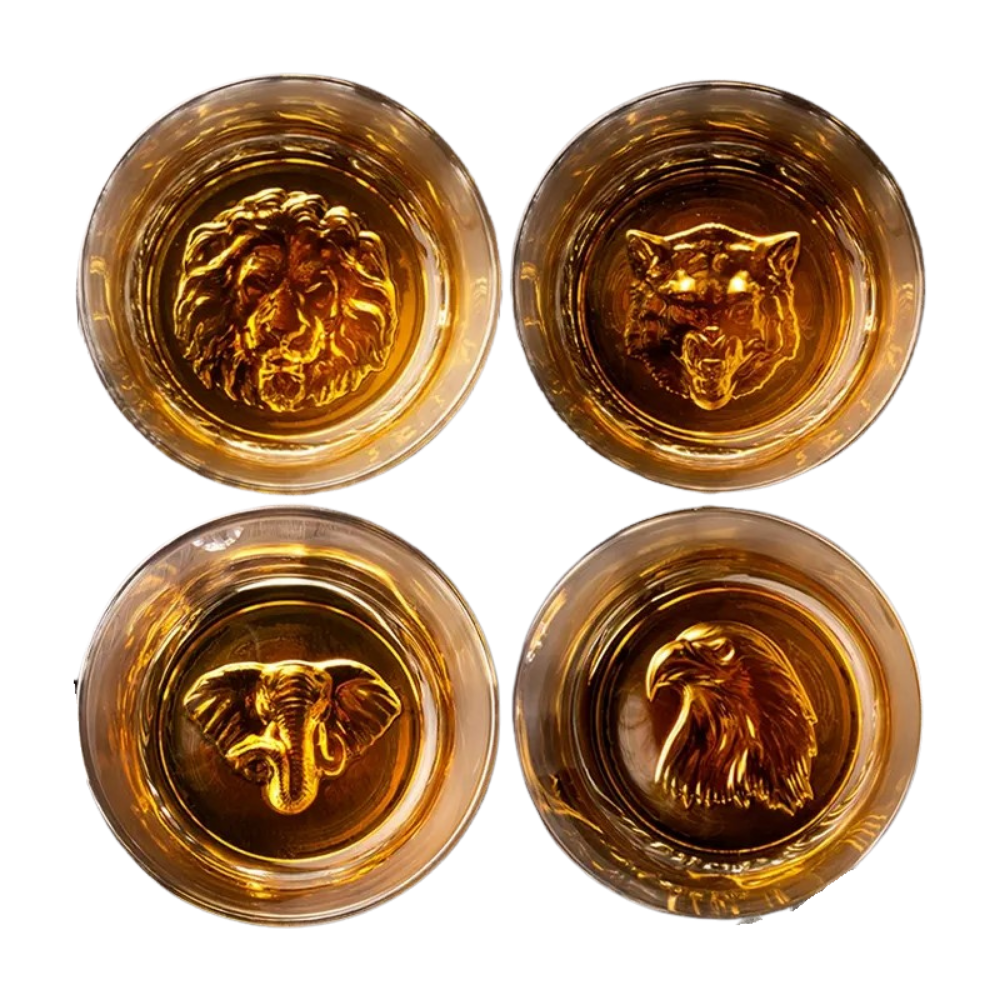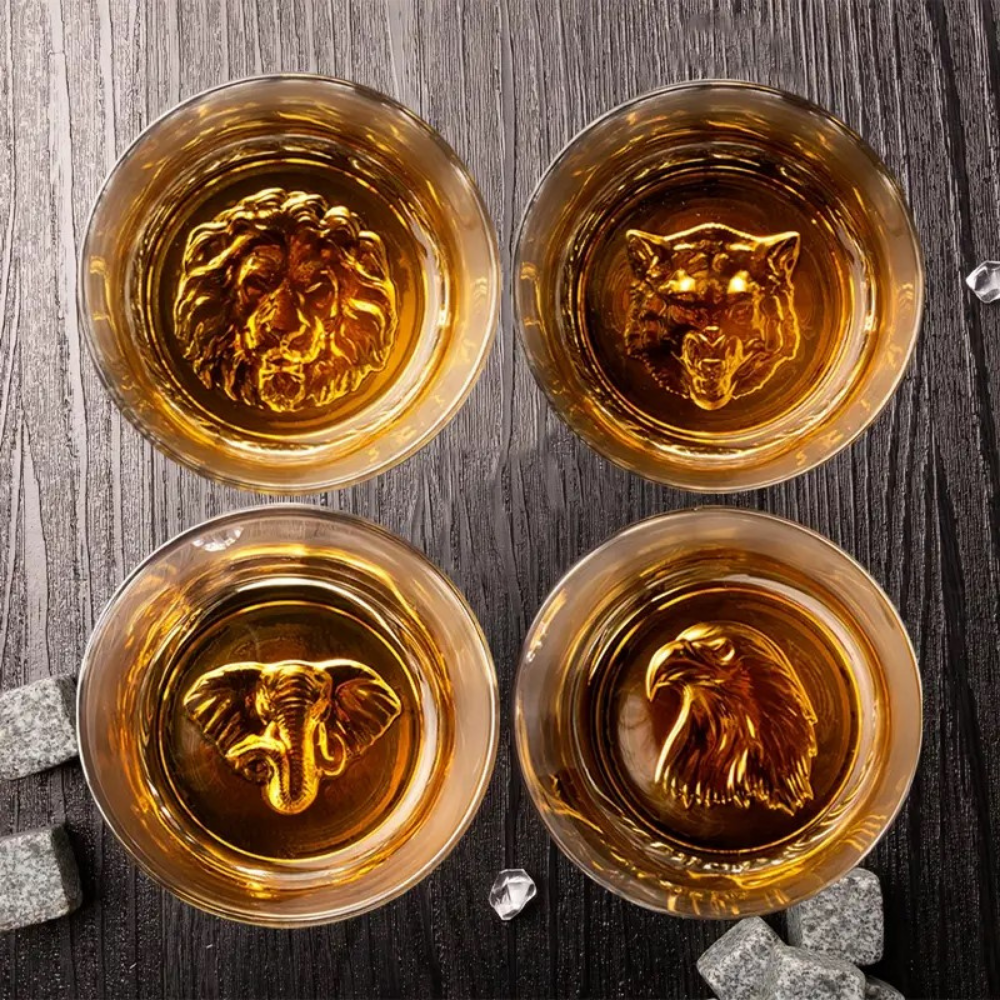 Hayvan Figürlü Viski Bardağı Seti – 4'lü Lüks Cam Set (300 ml | 9.2 cm)