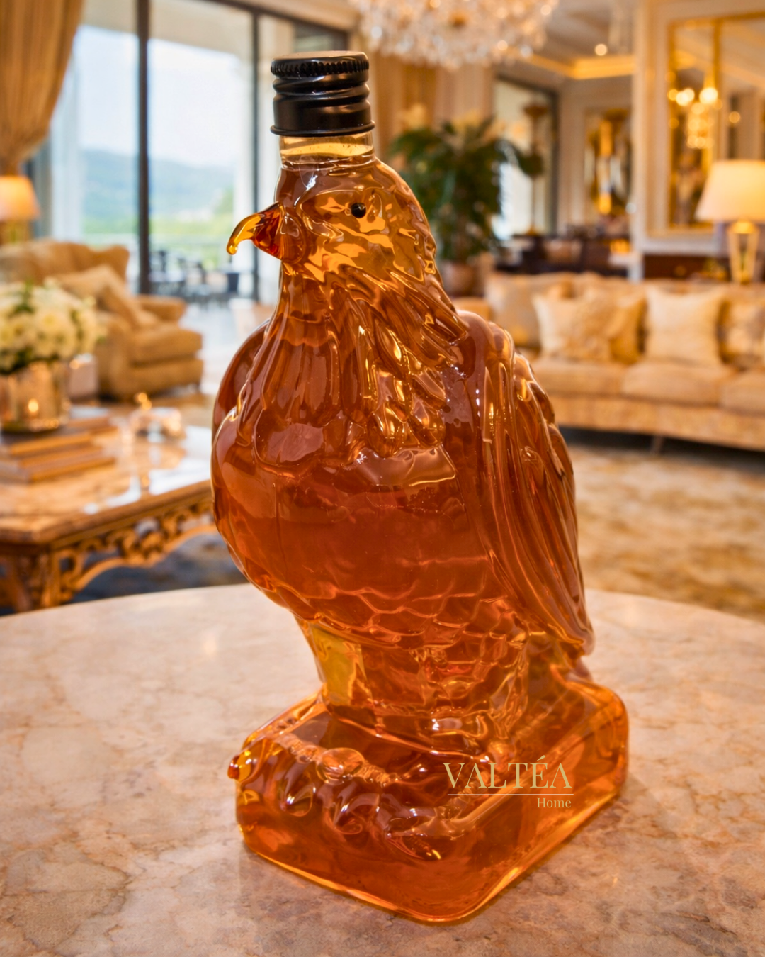 Asaletin ve özgürlüğün simgesi olan bu kartal figürlü cam şişe, modern tasarımı ve zarif formuyla dikkat çeker. 300 ml kapasitesi sayesinde özel içecekler için mükemmel bir sunum sağlar.