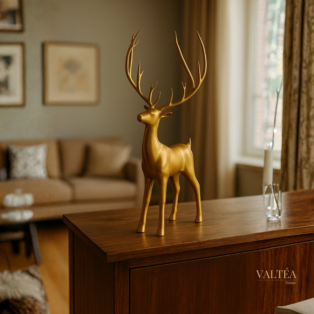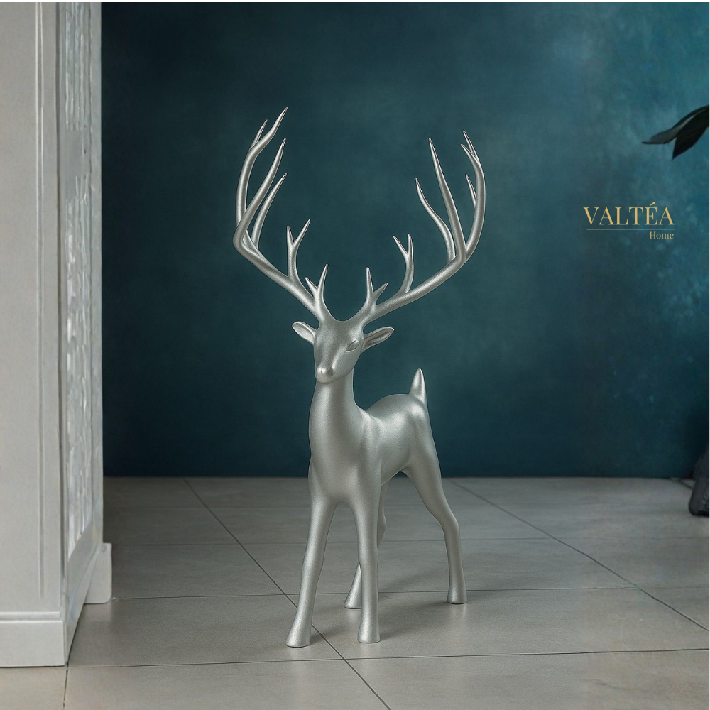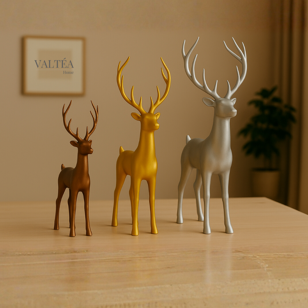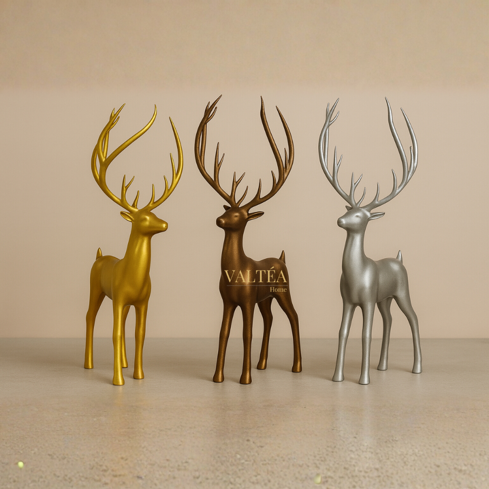 Plastik malzemeden üretilmiş, altın, gümüş ve bronz renk seçenekleriyle sunulan geyik heykeli, her ortama estetik bir dokunuş katar.